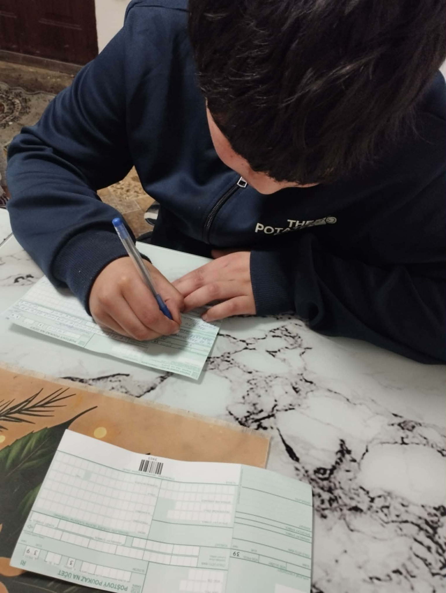 Aktivita bola zameraná na praktické oboznámenie mládeže s vypĺňaním poštového šeku. Mládež sa najskôr oboznámila s jednotlivými časťami seku a s ich významom. Potom krok za krokom sme si vysvetlili ako správne a čitateľné vyplniť, a na čo si dávať pozor. Následne si mládež vypĺňanie šeku vyskúšala samostatne na vzorových tlačivách.