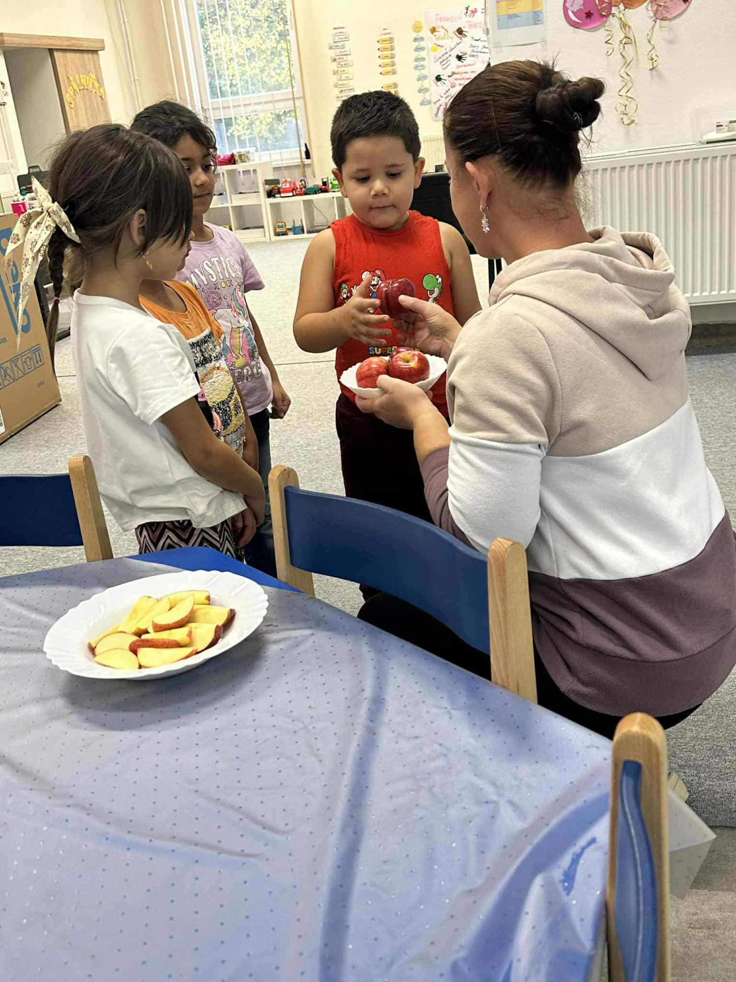 Jedným z dňov v mesiaci október je aj deň jablka. Pri tejto príležitosti nementorka spolu s deťmi mali aktivitu s názvom" Červené jabĺčko". Pri aktivite sa deti naučili, aké je dôležité jesť jabĺčka, že sú zdrojom vitamínu C a že sú dôležité pre zdravý rast detí.