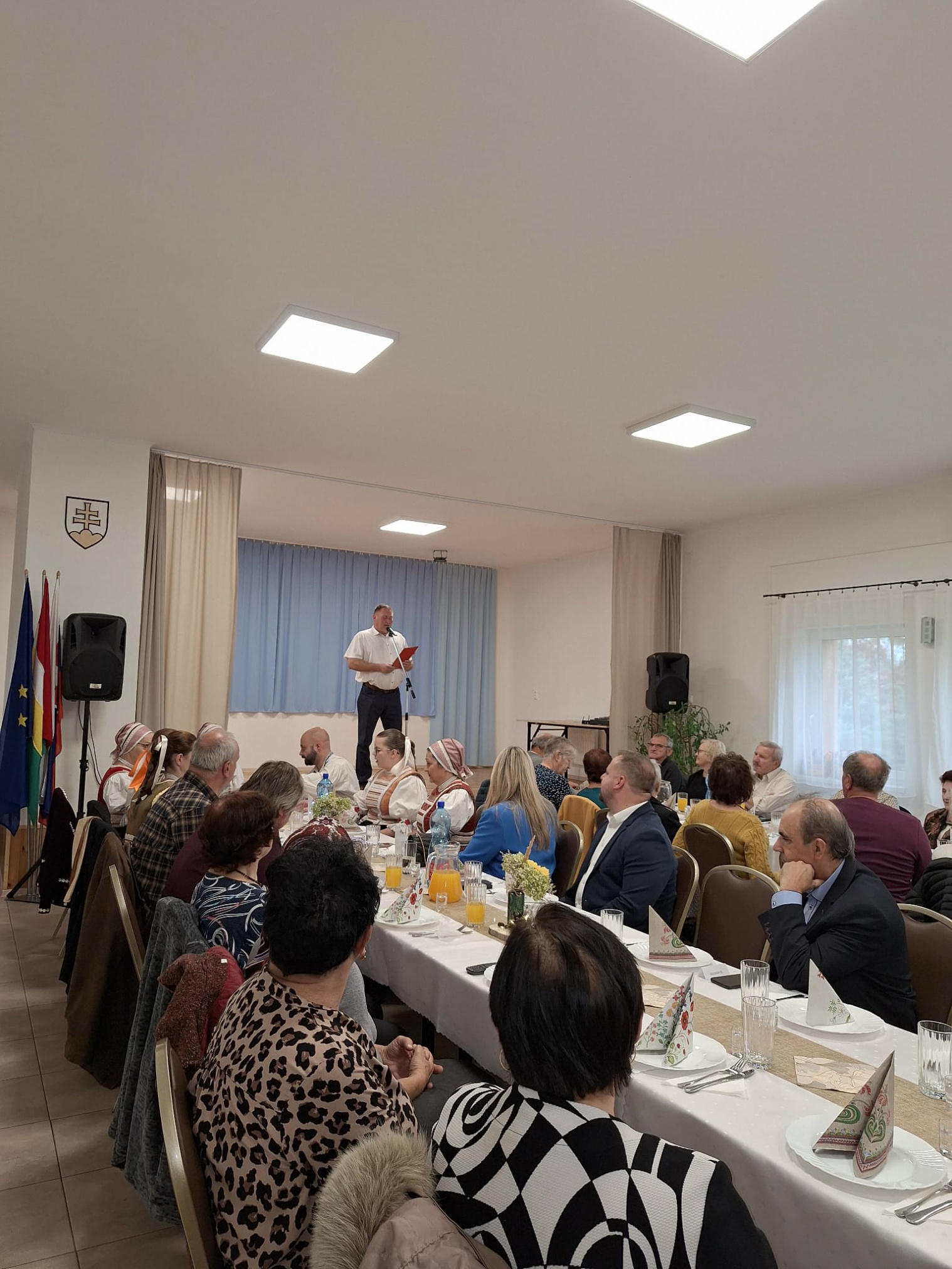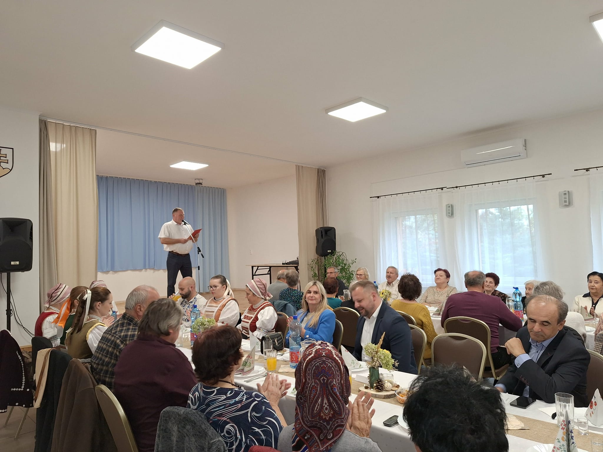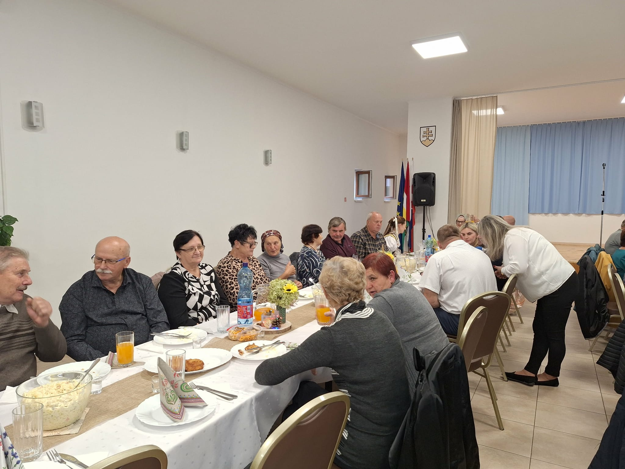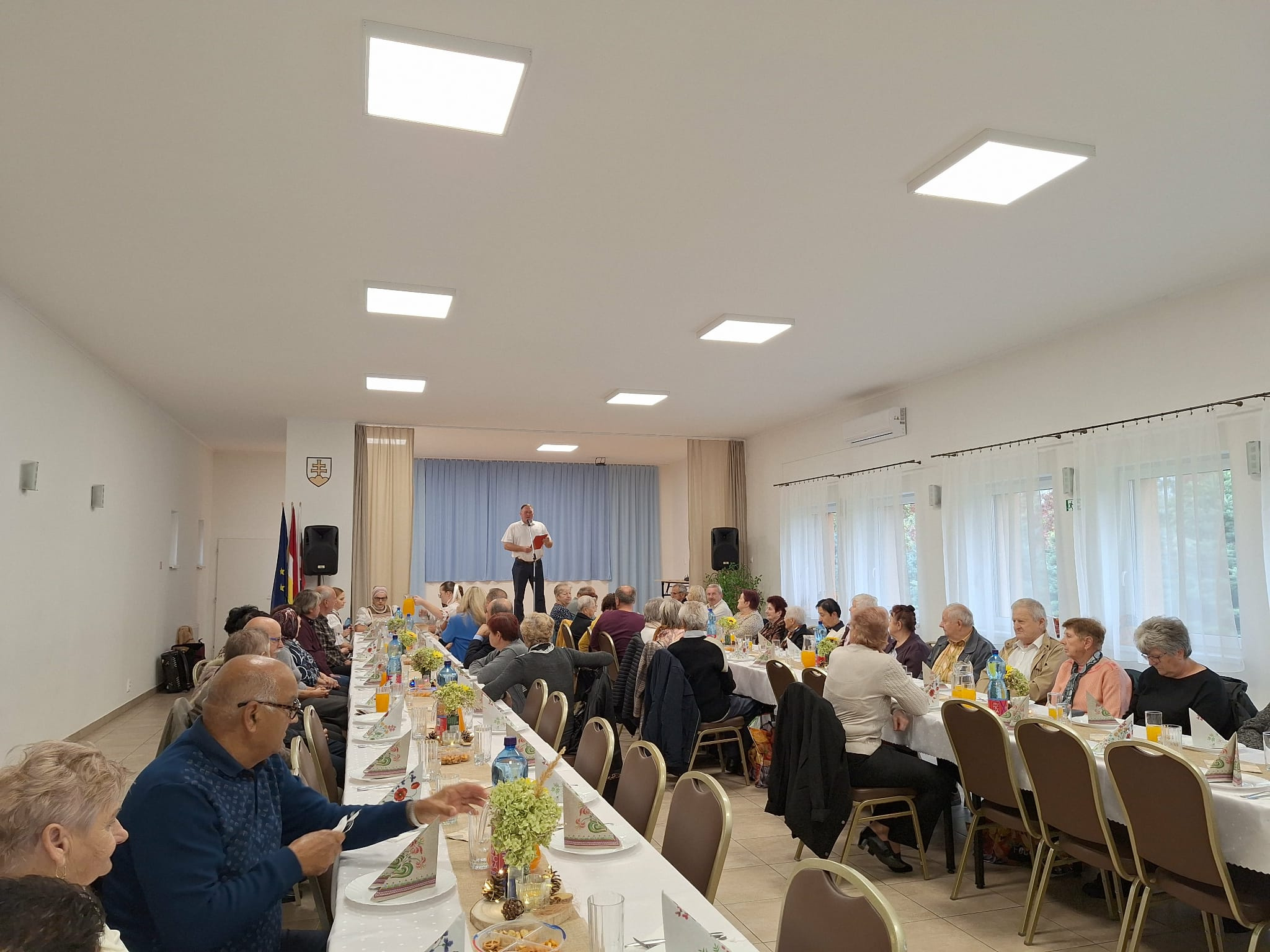 Jeseň nás ohuruje umeleckými dielami prírody, hýri farbami a ukazuje nám krásu zrelosti. Presne taký je aj človek v jeseni života. Október je už tradične mesiacom, kedy vzdávame úctu našim najstarším. Úcta k starším je viac než len fráza, je to postoj vďačnosti a uznania, ktorý sa prejavuje zdvorilosťou, pomocou, alebo jednoducho spoločným trávením času. Práve v tomto duchu sa nieslo príjemné popoludnie, ktoré sme strávili s našimi seniormi dňa 12.októbra 2025 v kultúrnom dome v Šamudovciach. Sálu kultúrneho domu zaplnila päťdesiatka našich seniorov s ktorými sme strávili príjemné popoludnie.