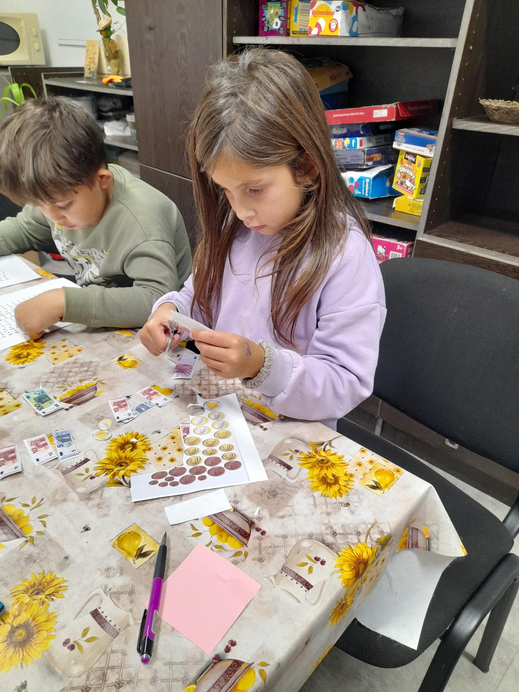 Na pracovných listoch si deti spoločne so sociálnou pracovníčkou precvičili počítanie a napísali domáce úlohy. Prostredníctvom hry sa učili narábať s peniazmi a rozvíjali svoju finančnú gramotnosť.