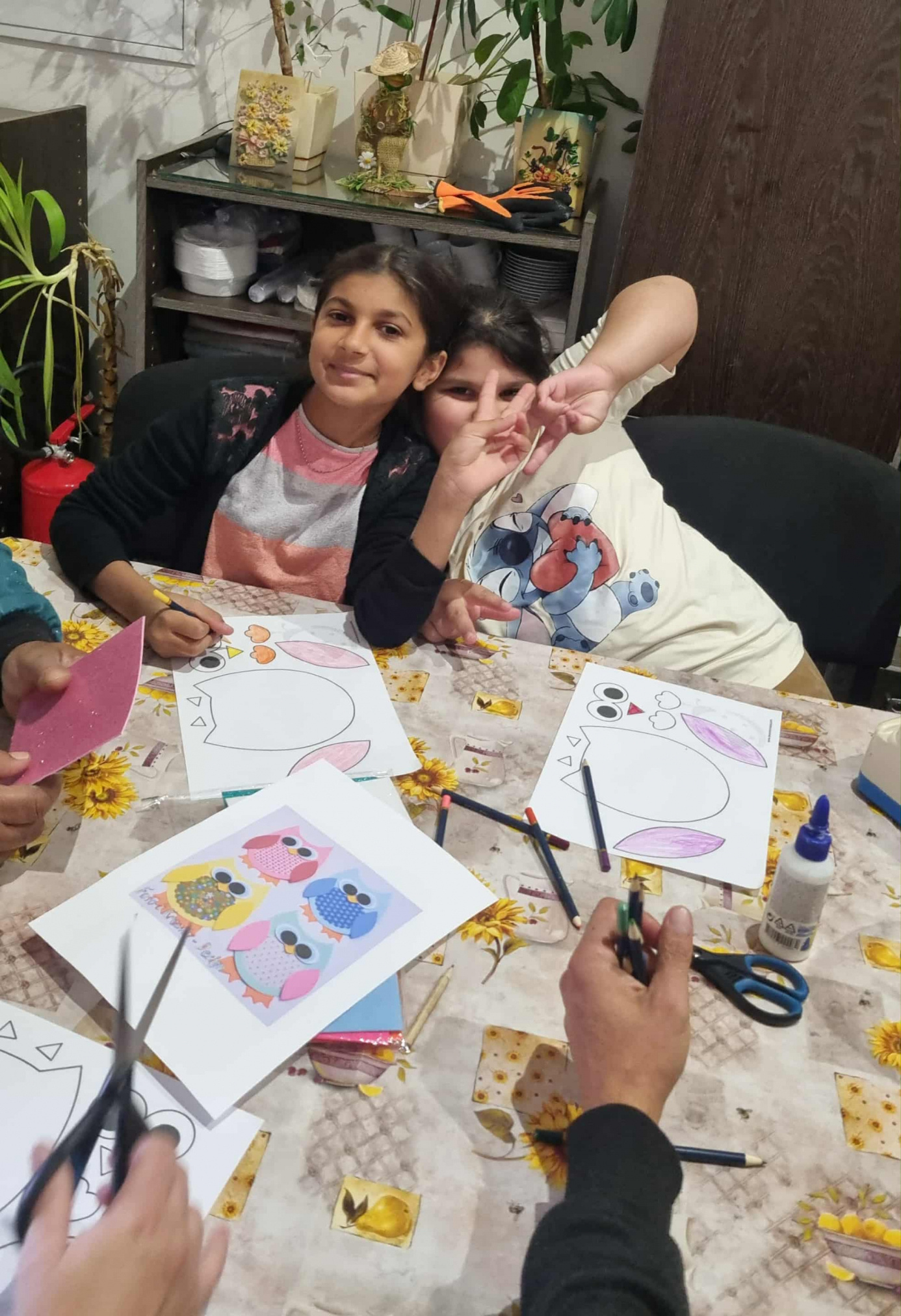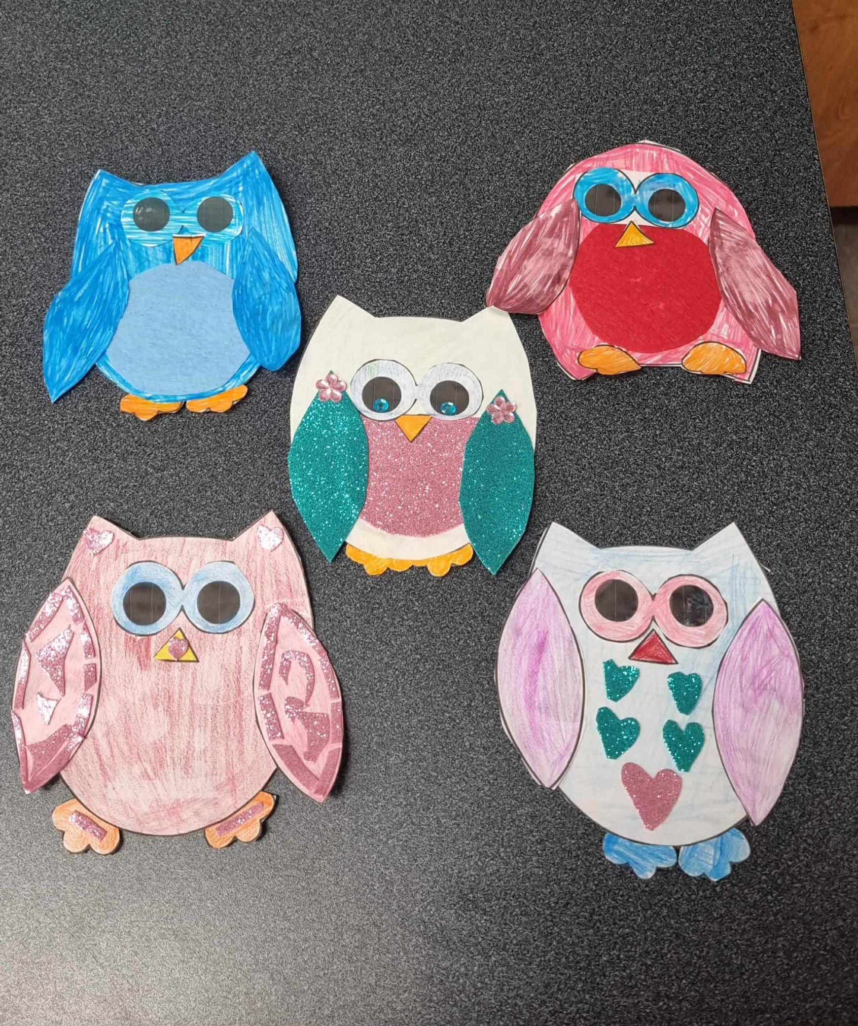 Deti vyrábali veselé sovičky z papiera ako tvorivú výtvarnú aktivitu. Každé dieťa si vystrihlo tvar sovičky, vyfarbilo ju podľa vlastnej fantázie a ozdobilo rôznymi materiálmi – trblietkami, farebným papierom, fixkami či pastelkami.