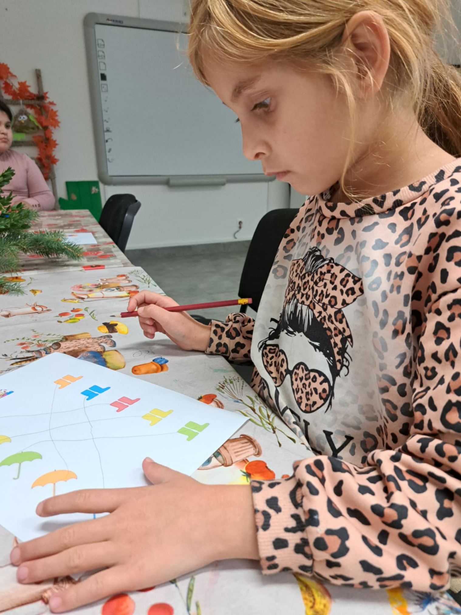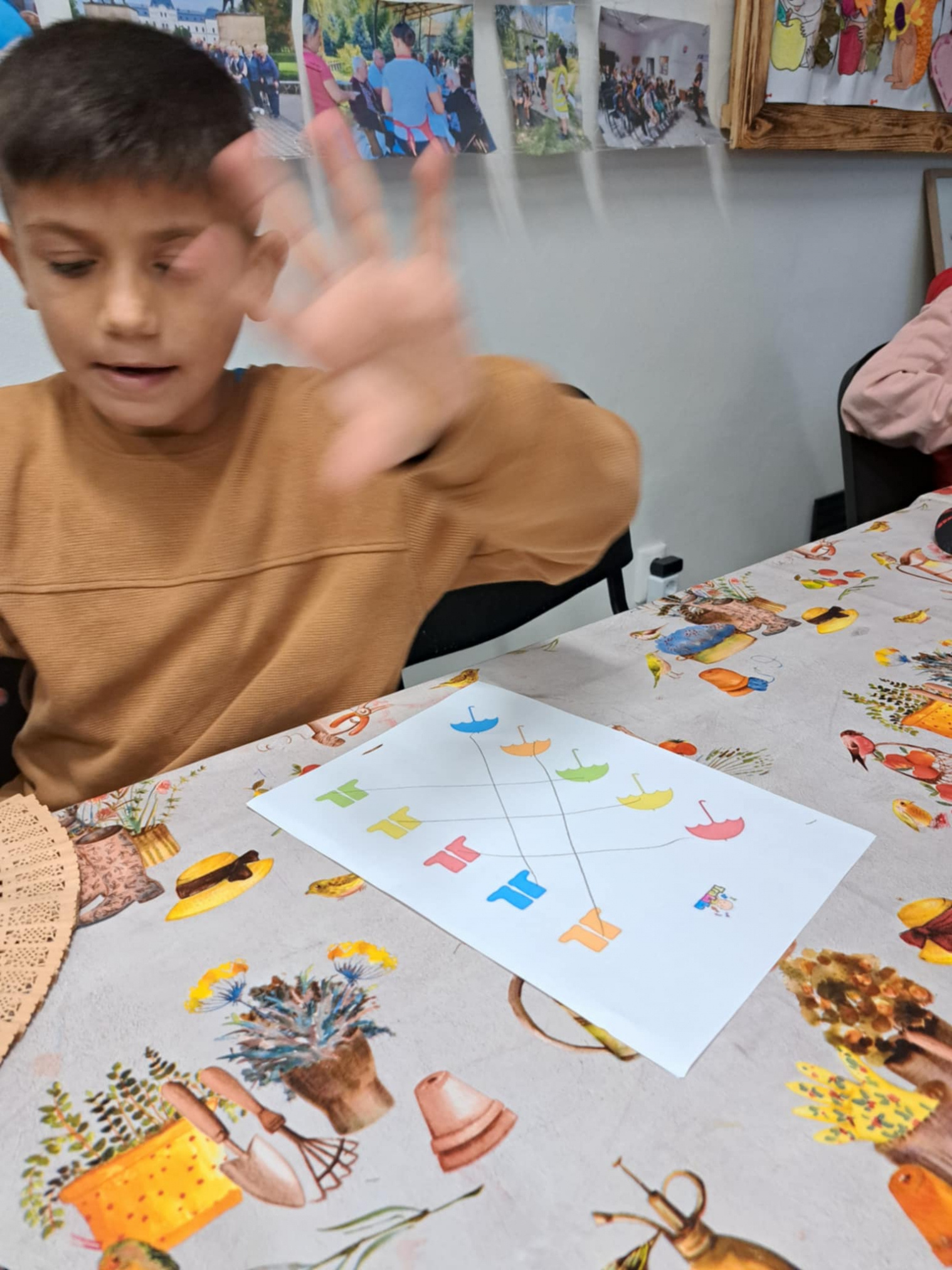 Pri aktivite mali deti za úlohu správne priradiť čižmičky k farebnému dáždniku. Pri aktivite si deti precvičili farby.