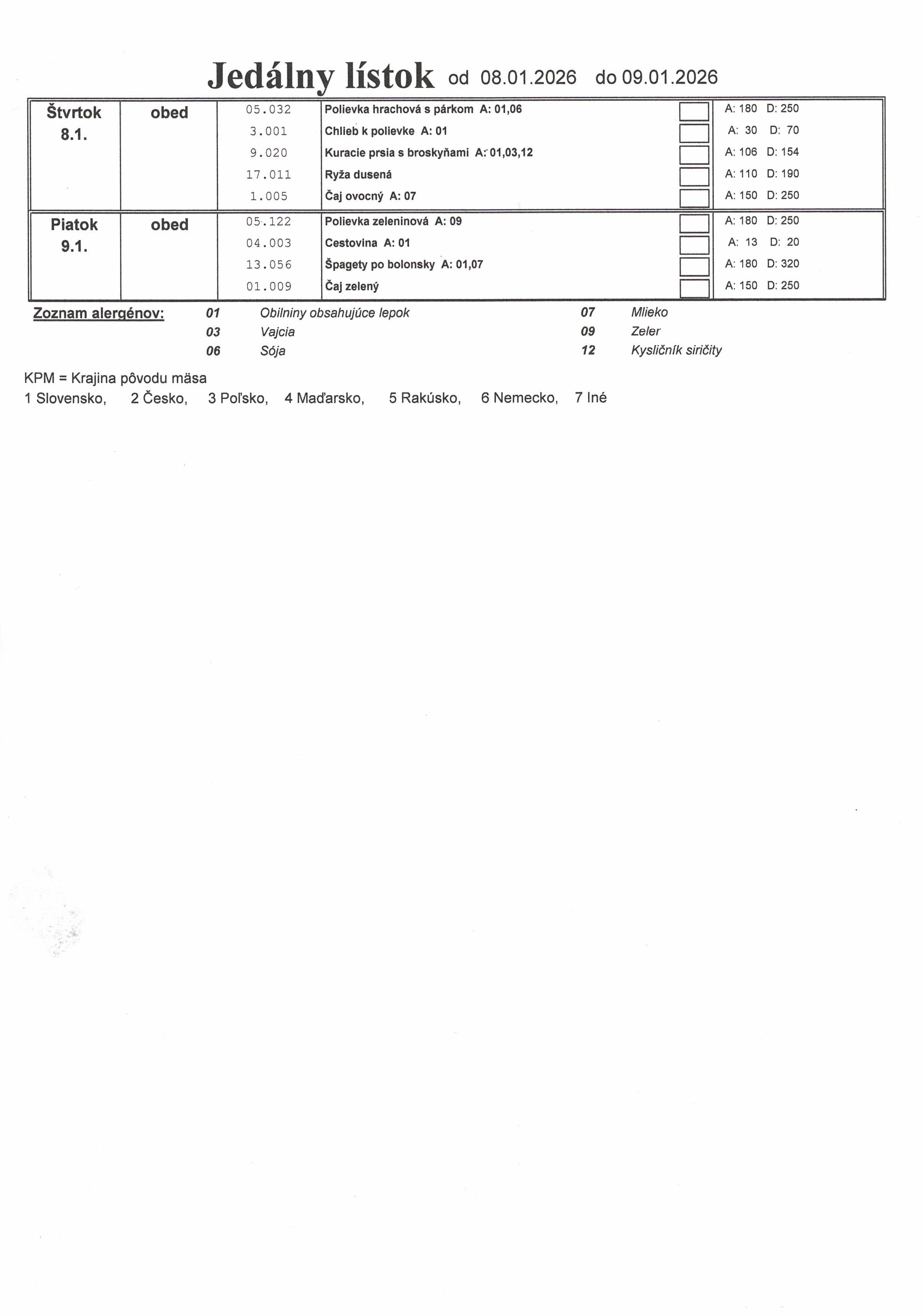 Jedálny lístok 08.01.2026 - 09.01.2026