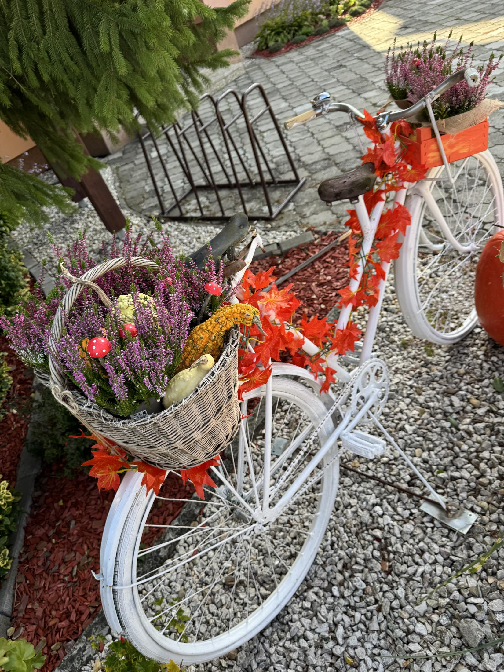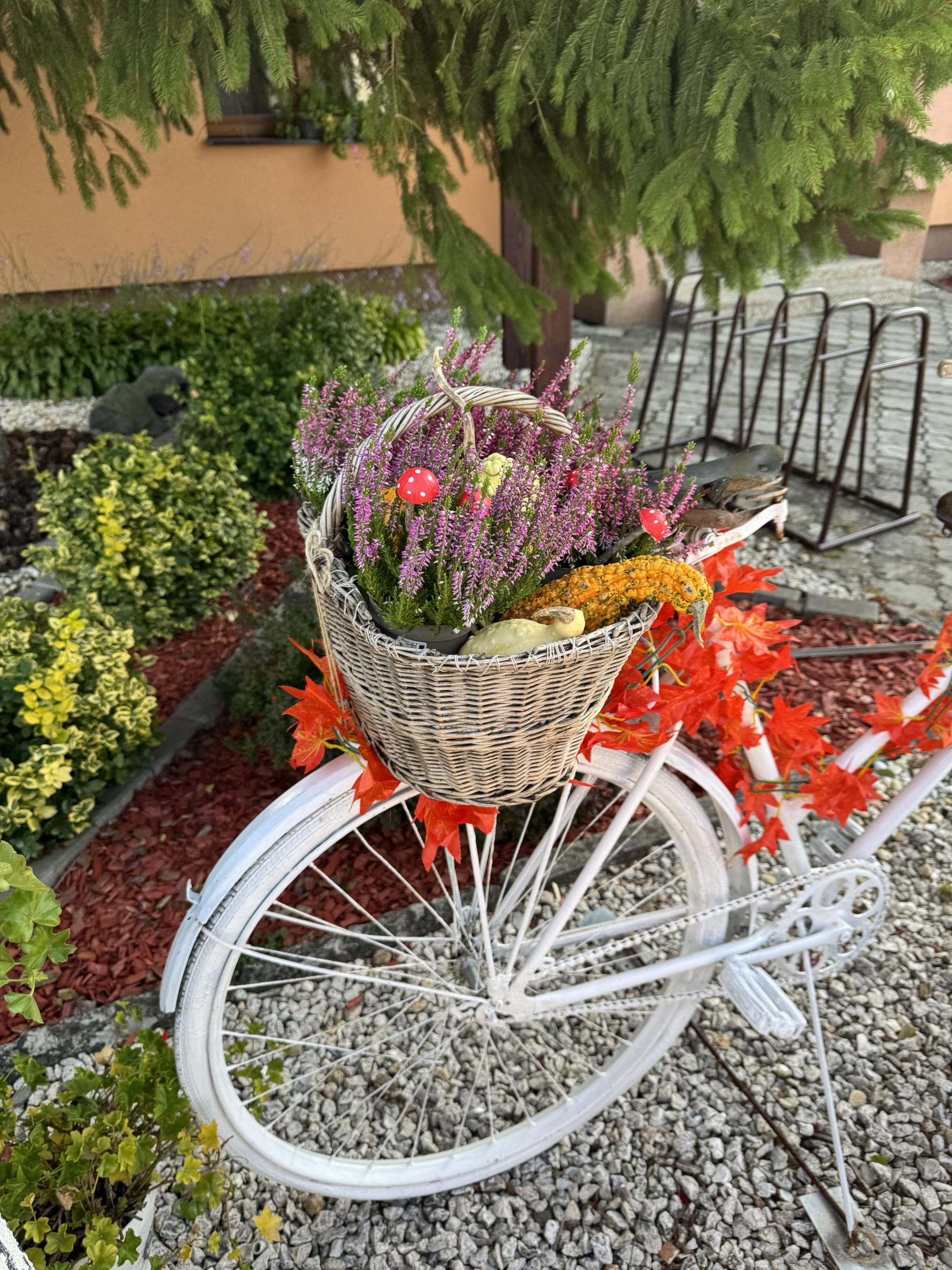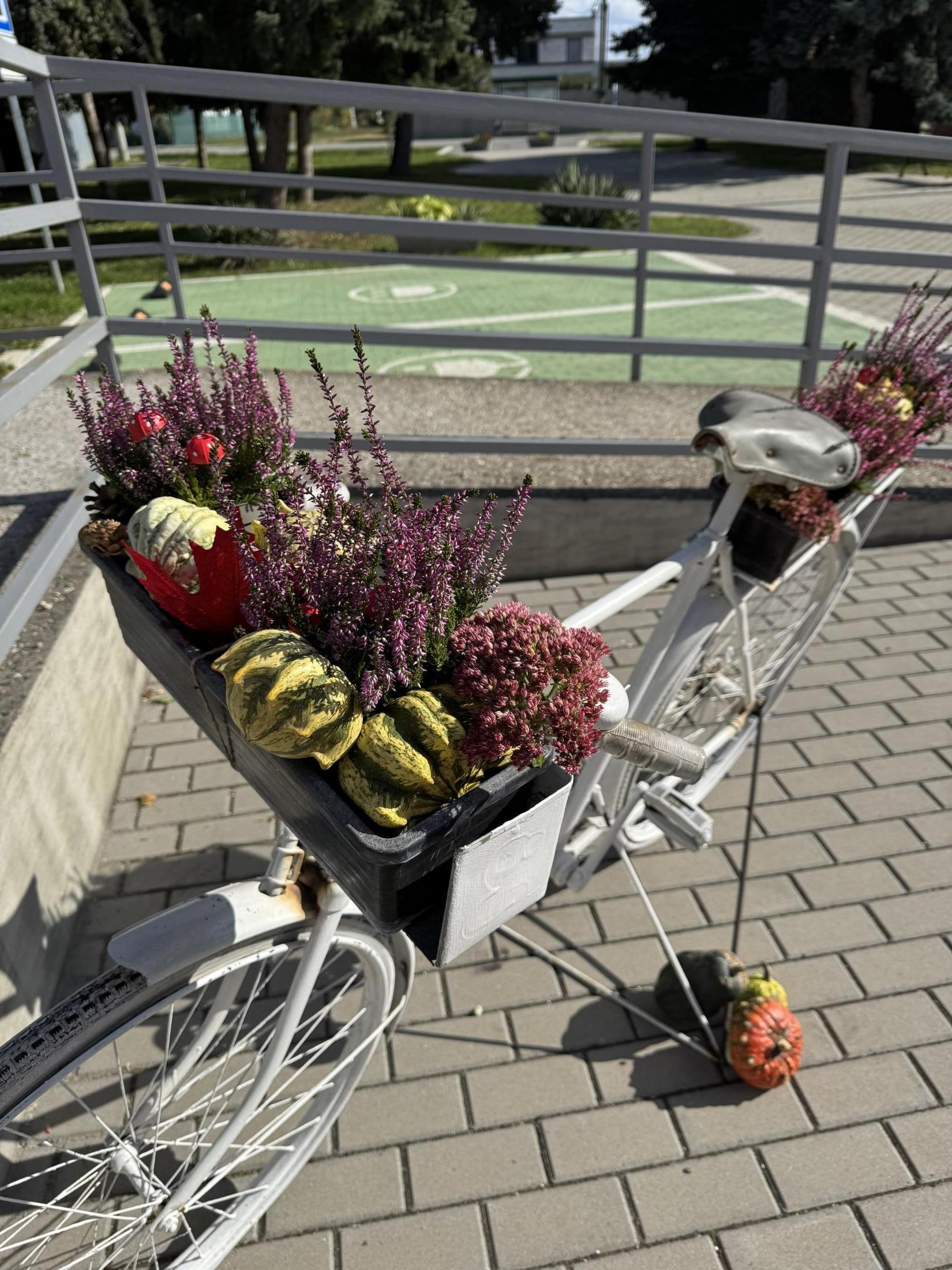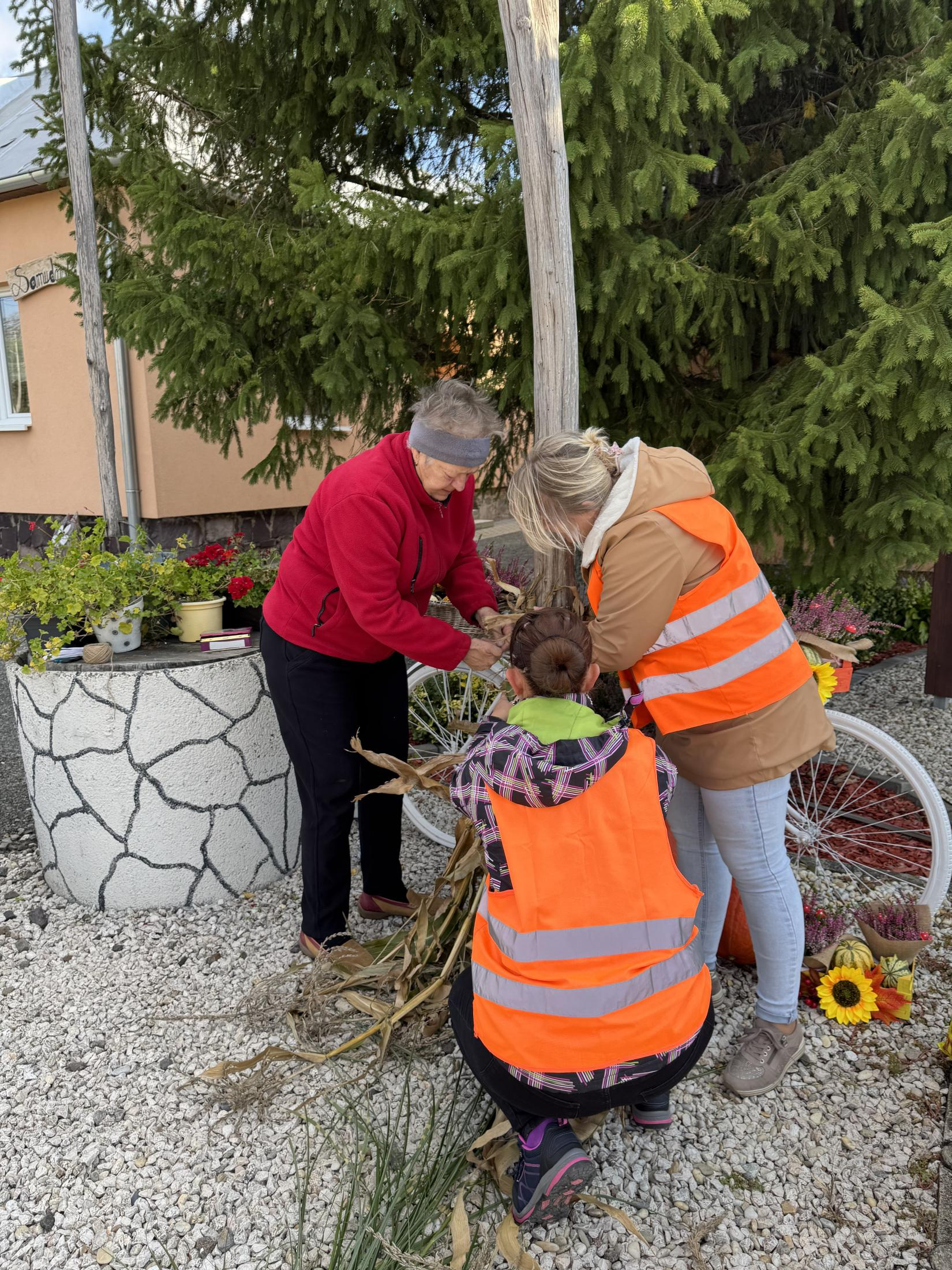 Jesenná výzdoba pred Obecným úradom a Centrom Rozvojového tímu, ktorá bola realizovaná v spolupráci s miestnou dobrovoľníčkou.