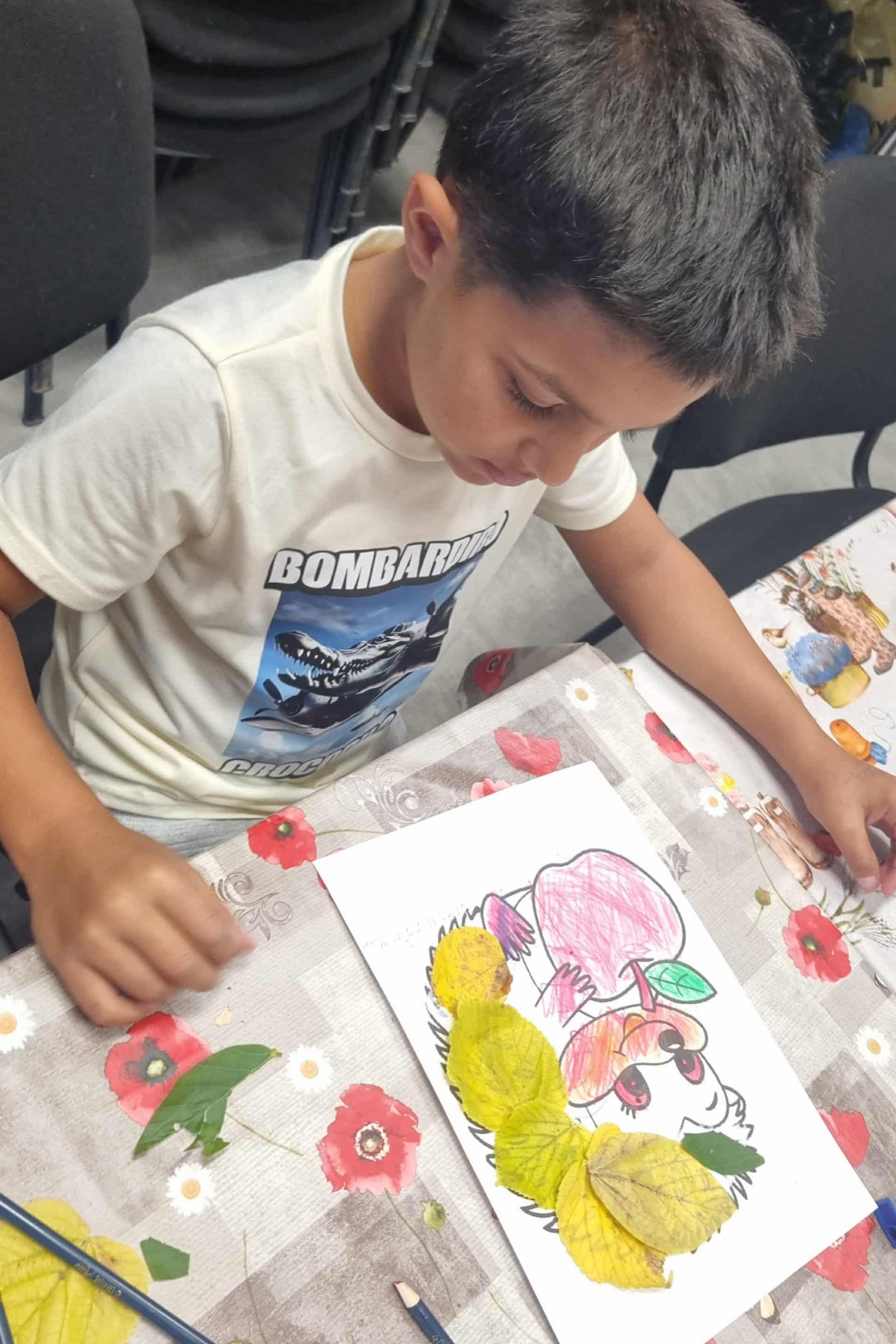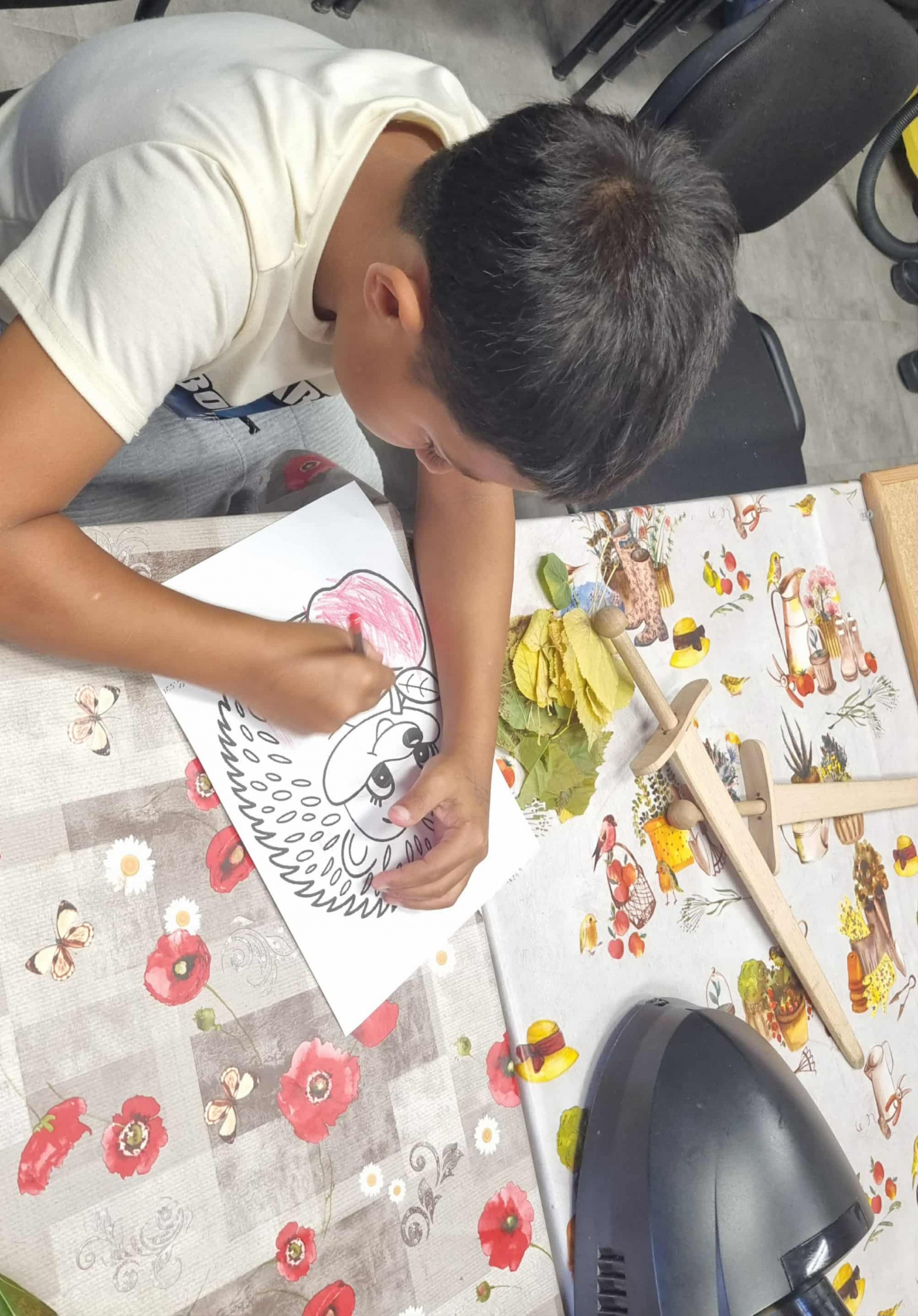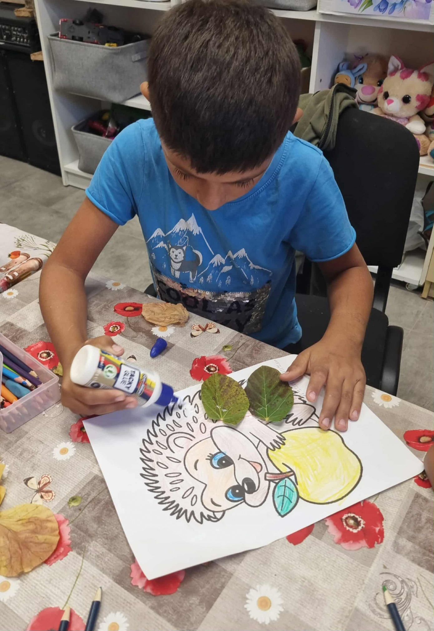 Deti si v tejto tvorivej dielničke vytvorili veselého jesenného ježka pomocou kombinácie kreslenia, vymaľovania a lepenia skutočných listov. Každé dieťa dostalo obrázok ježka s jablkom, ktorého najprv vymaľuje podľa vlastnej fantázie. Cieľom aktivity je rozvíjať jemnú motoriku, tvorivosť, vnímanie farieb a tvarov.