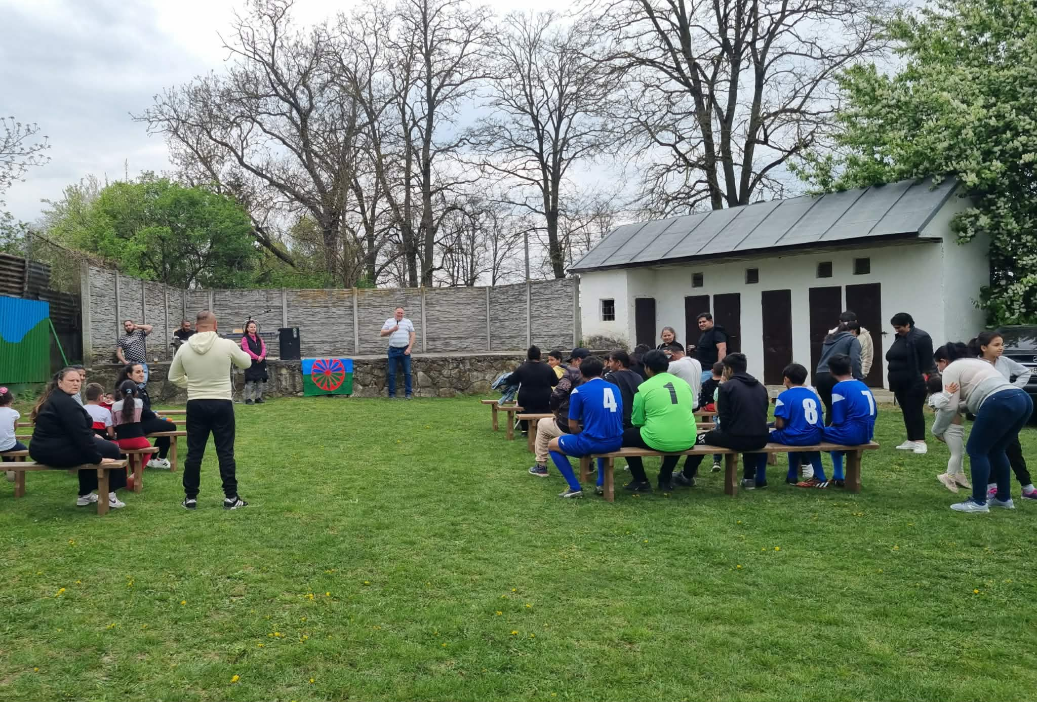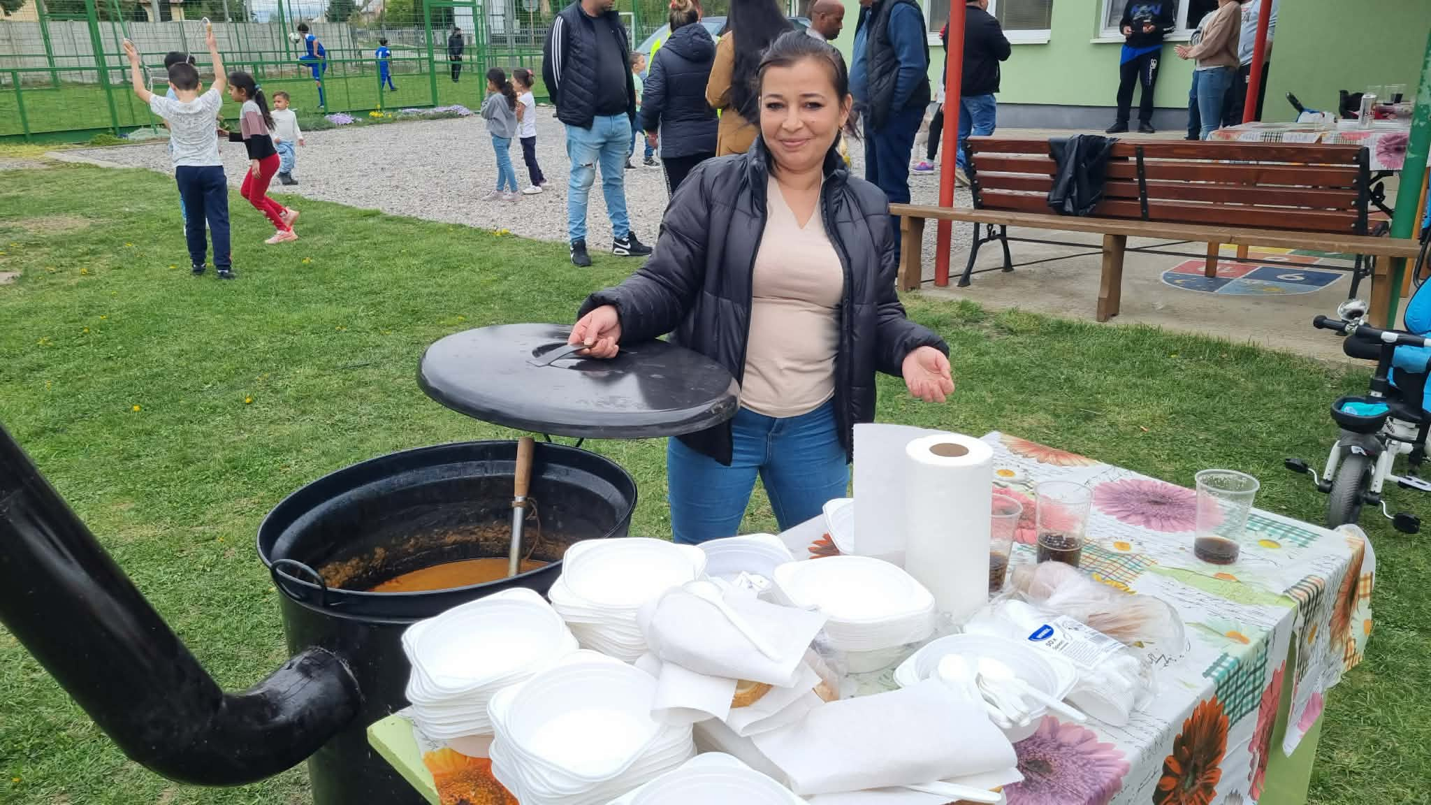 Na úvod všetkých srdečne privítal pán starosta obce Emil Ircha a otvoril spoločnú akciu spolu s Rozvojovým tímom, kde sme si spoločne pripomenuli Medzinárodný deň Rómov, ktorý bol 8.4. Prihovorila sa všetkým aj sociálna pracovníčka z Rozvojového tímu Vyšinová, ktorá vyzdvihla, že v tento deň si pripomíname históriu, kultúru a prínos rómskeho národa. Zachováva sa tak bohatstvo kultúry, vlastný jazyk – rómščina, bohatá hudba a tanec, pestré tradície a zvyky a silný zmysel pre rodinu a spolupatričnosť. Tento deň pripomíname aj vznik rómskej vlajky a hymny (1971), čo podporuje rovnosť, rešpekt, porozumenie a pripomína, že každý má právo na dôstojný život i rovnaké príležitosti. Spolu sme tak silnejší. Sme rôzni, ale rovní. Spolu tak tvoríme budúcnosť. Vyzdvihla, aby sme sa vzájomne rešpektovali, učili sa jeden od druhého a tvorili svet bez predsudkov. Tancami dievčatá spestrili program, kde ich rodičia podporili potleskom a svojou prítomnosťou. Veľmi nás potešili a do spevu i rezko do tanca všetkým hrali Marek Pulko s bratom Kalmanom Pulkom so svojou hudobnou skupinou. Veľmi pekne im za to ďakujeme i spolupráci na tejto spoločnej akcii s pánom starostom obce. Občerstvenie a výborný guľáš boli zabezpečené. Deti dostali záložky, zatancovali sme si spoločne, zaspievali a chlapci aj zahrali futbal.