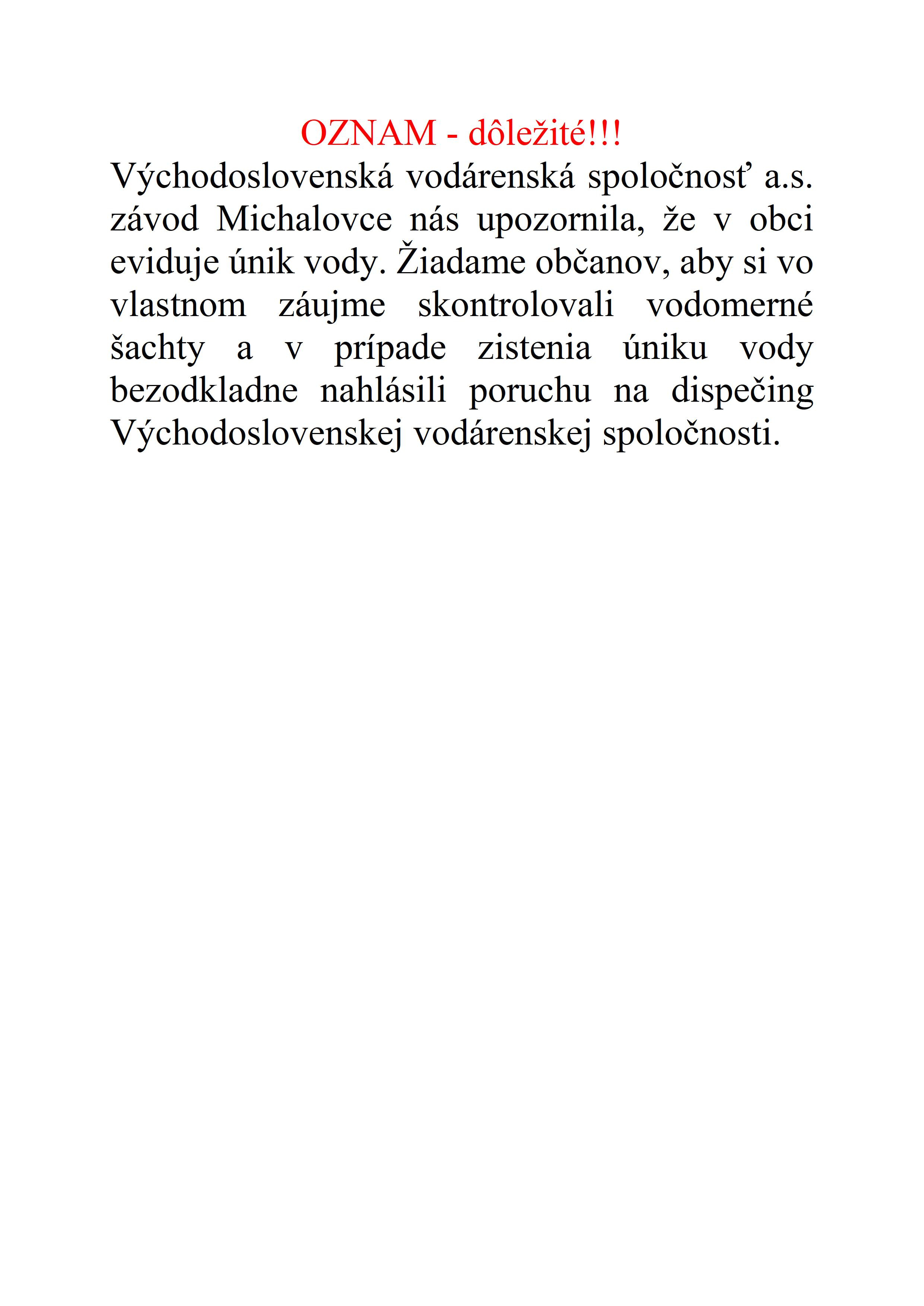 Východoslovenská distribučná oznamuje občanom, že dnes 09.01.2024, t.j. v utorok, realizuje v našej obci odpis stavu elektromerov. Prosíme občanov aby si zabezpečili psov a umožnili tak pracovníkom bezproblémový prístup k elektromerom.