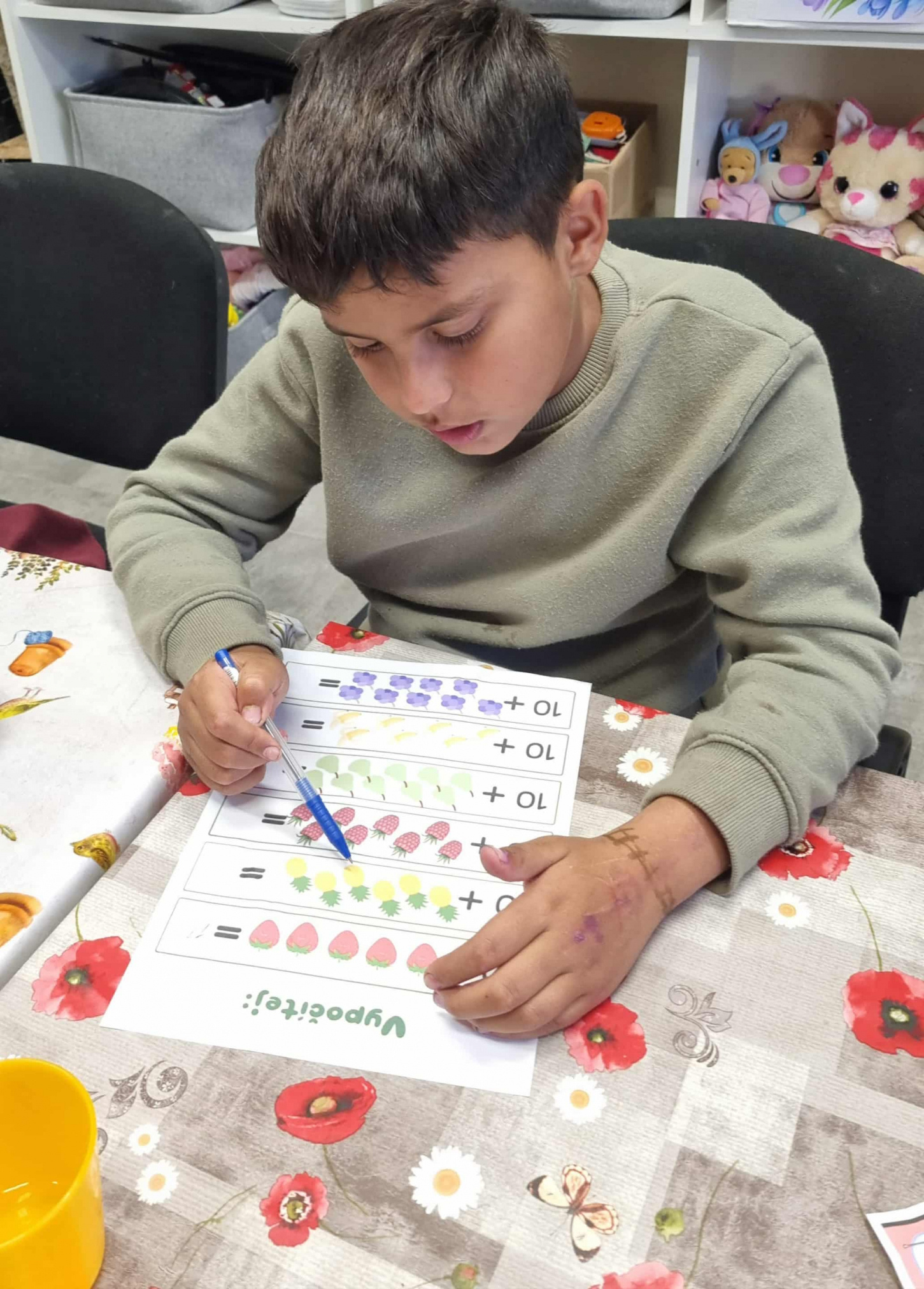 Deti pracovali na pracovných listoch, kde sa učili zábavnou formou počítať pomocou ovocia a kvetov. Spočítavali, dopĺňali a hľadali správne riešenia.