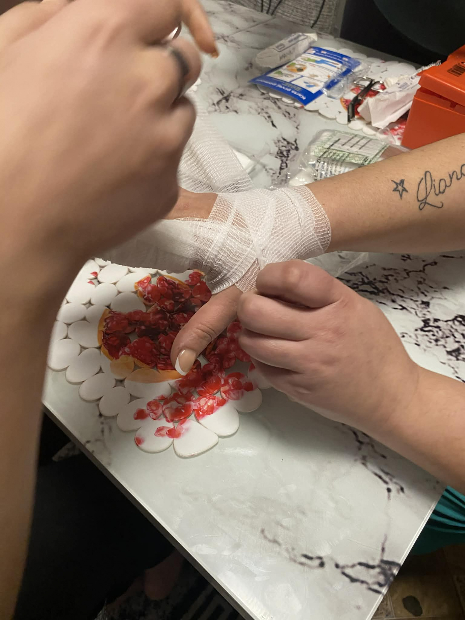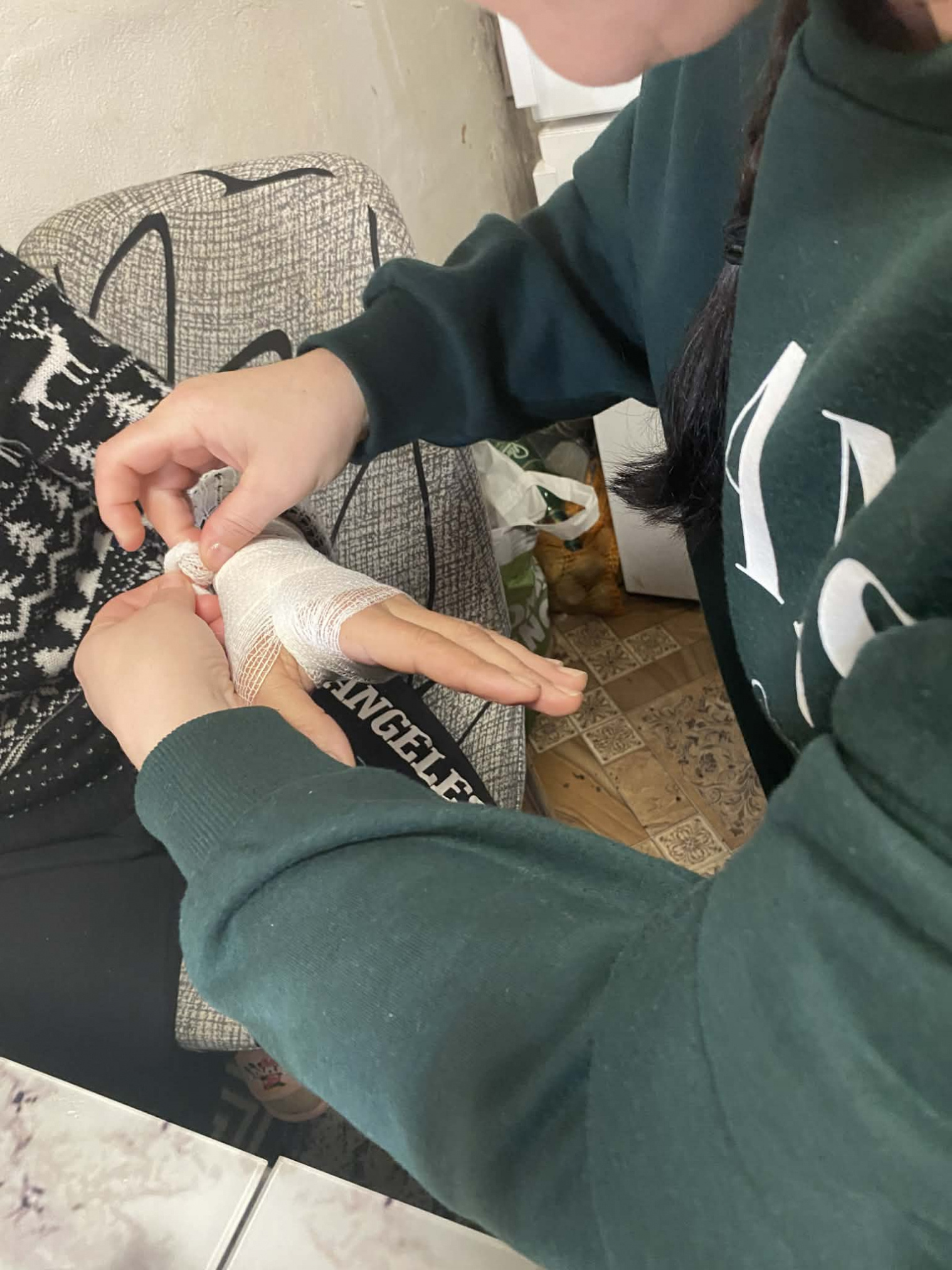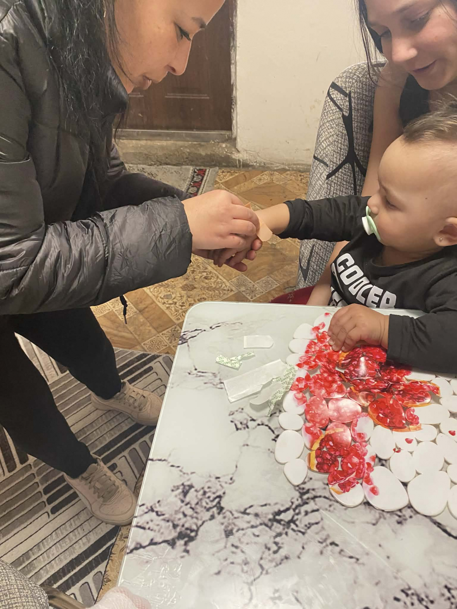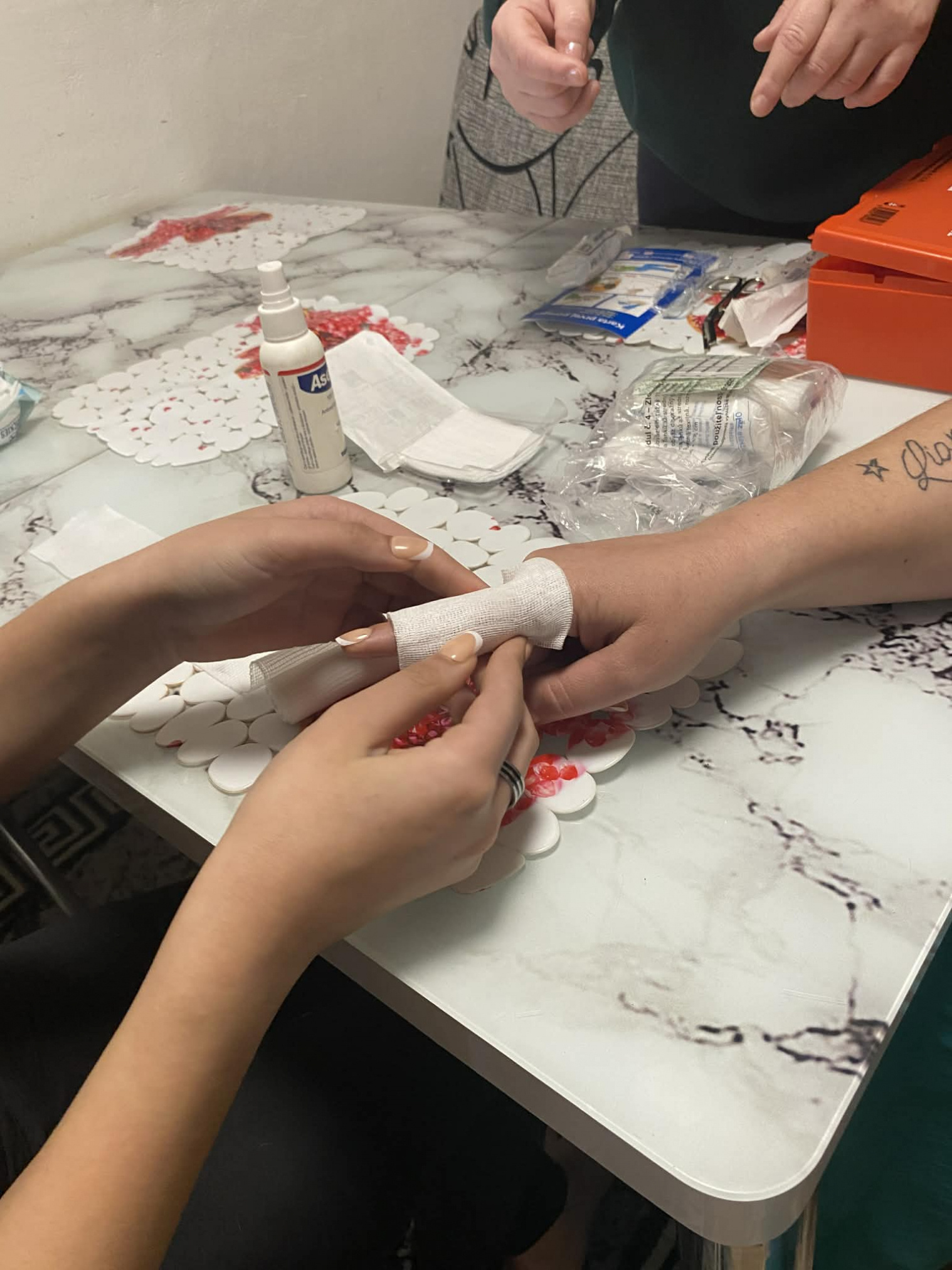 Nenementorka, nene a mamičky spolu s deťmi mali aktivitu zameranú na získavanie rodičovských zručností s názvom Prvá pomoc. Mamičky a deti sme učili, ako si správne ošetriť rany, dezinfekcia, prekrytie rany, obväzovanie.