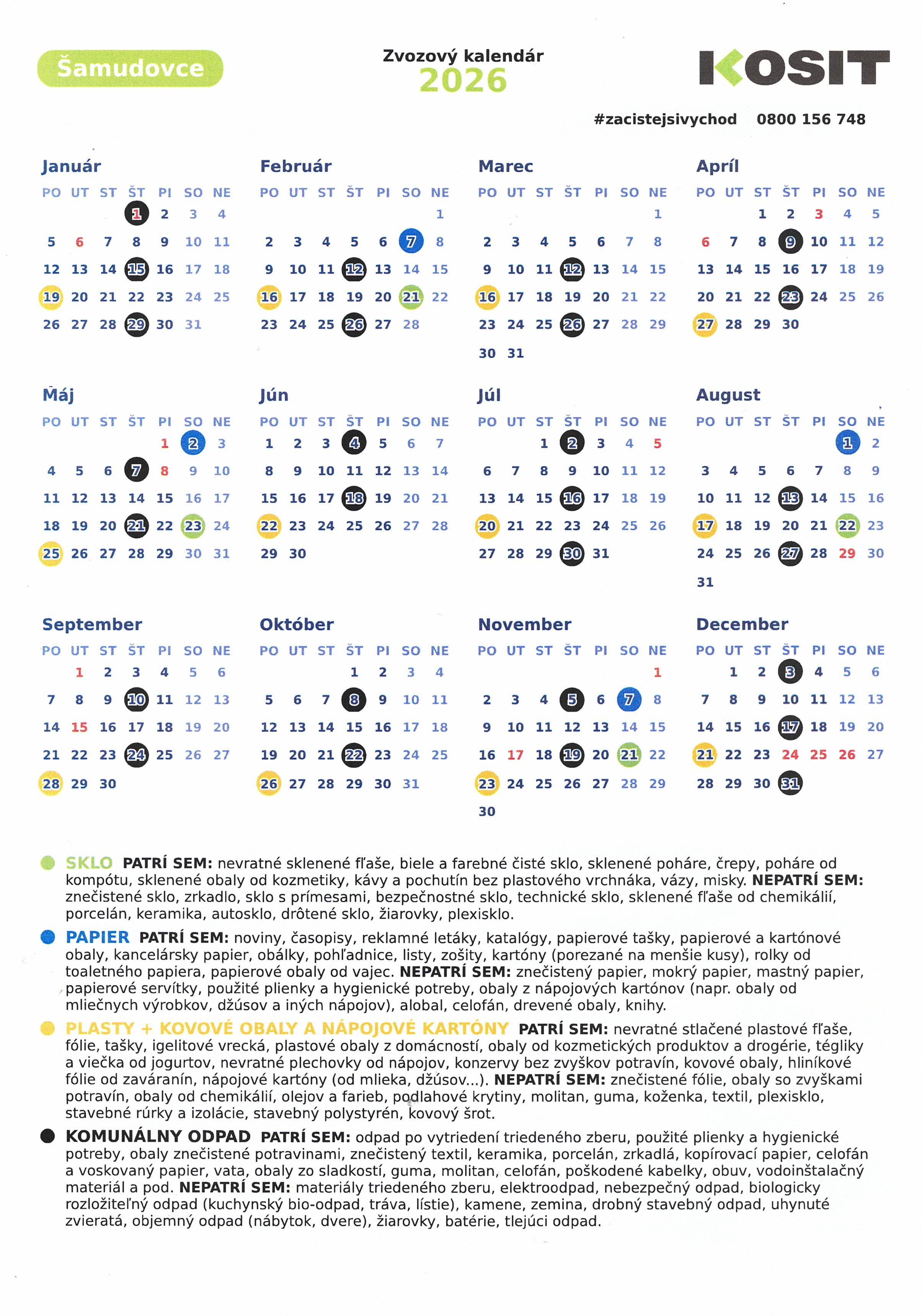 Zvozový kalendár 2026